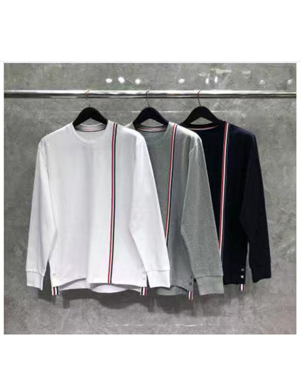 TB-49 TB 왼쪽 어깨 레드 화이트 블루 짜임 라운드 맨투맨