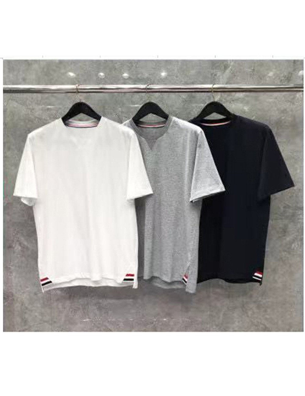 TB-73 TB 밑단 삼각 테이프 라운드 반팔 티 > 톰 브라운(Thom Browne)
