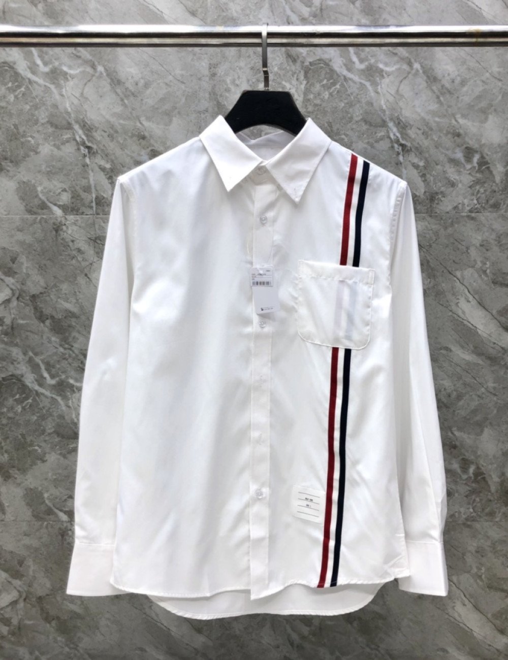 TB-77088 TB 앞 와이드 테이프 긴팔 셔츠 > 톰 브라운(Thom Browne)