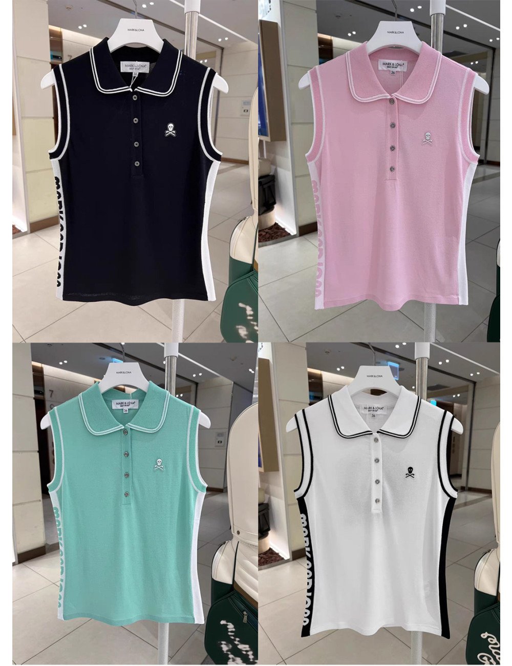 golf-47 마크 앤 로나 A칼라 핑크 나시 뒤 해골 빅 로고 사이드 브랜드 영문